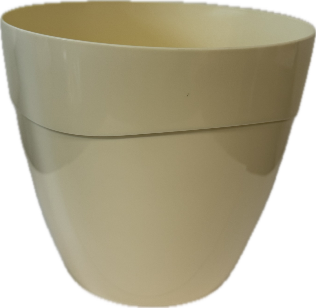Kvetináč bez dierok (obal) z mäkšieho lesklého plastu vhodný najmä na interiérové okrasné rastliny. Rozmer meraný ako priemer horného okraja.