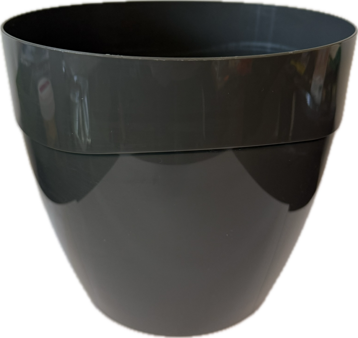 Kvetináč bez dierok (obal) z mäkšieho lesklého plastu vhodný najmä na interiérové okrasné rastliny. Rozmer meraný ako priemer horného okraja.